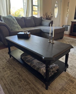[This review was collected as part of a promotion.] The Maven Lane Pullman Traditional Rectangular Wooden Coffee Table in Antiqued Black is the perfect addition to my living room. I really like the details in design and the antiqued look that has striated lines. The 2 tiered table is a plus for any kind of display! The instructions said it would take about 20 minutes to assemble, but it only took my husband and I about 5 minutes. It was super easy and we really didn’t even need the instructions. The table is well built and doesn’t have any wobble, whatsoever. I am pleased with this coffee table and its functionality. I received a great product thanks to Influenster and Maven Lane! I received this product in exchange for an honest review.