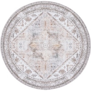 Discover the charm of timeless design with our 8'0" round area rug. Featuring a delicate interplay of beige and grey, this round rug adds a touch of elegance to any space. Crafted with a power loomed technique, the polyester pile offers both beauty and practicality. With a height of 1/8 inch, it complements your floor without overwhelming it. The rug boasts a traditional style that blends seamlessly with various decors, making it a versatile centerpiece for your home.