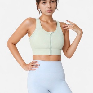 Anna-Kaci Active Women's Front Zip Crop Sports Bra with Scoop Neckline and Wide Shoulder Straps for Medium Support