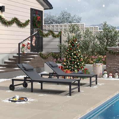 PURPLE LEAF Outdoor Double Chaise Lounge Aluminum Lounge Chairs with Adjustable Backrest Tanning Daybed Reclining Loveseat for Pool Beach Garden Patio