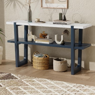 TiramisuBest Retro Entryway Table with Open Shelf,Narrow Console Table with Marble-Effect Top