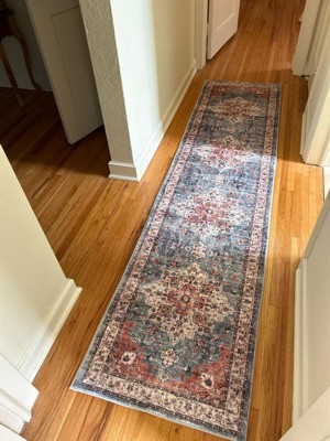 [This review was collected as part of a promotion.] The rug is very soft and feels good under your feet. The pattern and colors are cute. Should be easily washable when the time comes. You can tell the the pattern was printed on rather than using colored thread. Overall, it will serve as a nice hallway runner.