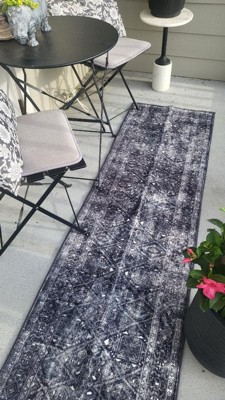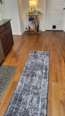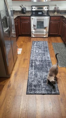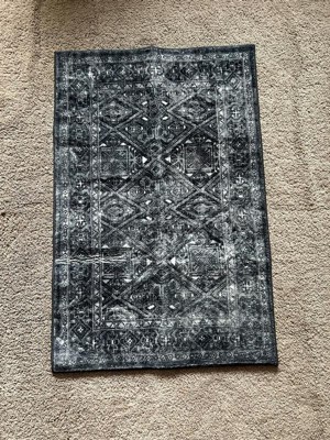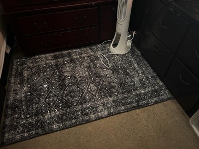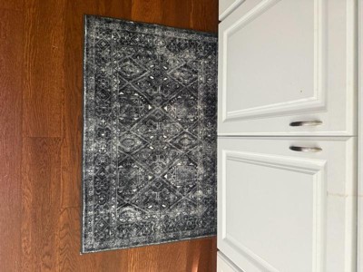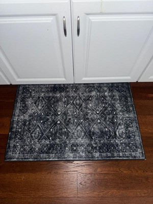 World Rug Gallery Transitional Bohemian Distressed Washable Non Slip Indoor Door Mat - BLACK 2'x4': Abstract, Low Pile, Stain & Fade Resistant