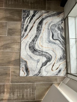 [This review was collected as part of a promotion.] This contemporary marble washable non slip area rug fits perfect and looks perfect for the outside of my shower, it feels super nice and soft and the best part is that is washable ,it feels like it will last a long time I can’t wait to see what it looks like after the first wash. I will purchase another one for my other restrooms