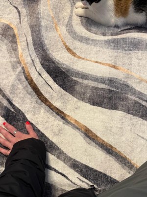 [This review was collected as part of a promotion.] I purchased the 2x8 gray marble-style rug for my hallway, and overall, I’m really pleased with it. The design is modern and elegant, blending seamlessly with my neutral decor. It feels soft underfoot and adds a stylish touch without overwhelming the space. The best part is that it’s washable—super convenient for high-traffic areas, especially with kids and pets around. It’s also non-slip, which has worked well on my hardwood floors without the need for an extra rug pad. I’m giving it four stars instead of five only because it’s a bit thinner than I expected, so it doesn’t have a plush feel. Still, it lays flat and looks great. For the price and easy maintenance, it’s a solid buy!