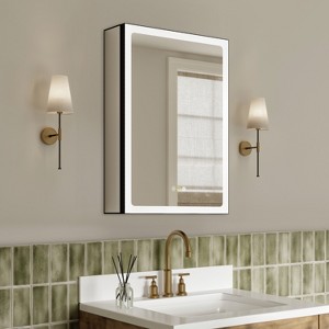 Grand LED Medicine Cabinet with Mirror, Recessed/ Wall Mounted Bathroom Cabinet, Dimmable, 3-Mode Light, Anti-Fog, Adjustable Shelves, Black