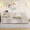 - [Pull-Out Twin Trundle] Equipped with a hidden twin-size trundle bed that slides out easily to accommodate extra guests or family members. The trundle lifts up smoothly to align with the main bed, creating a spacious, level sleeping surface when needed.