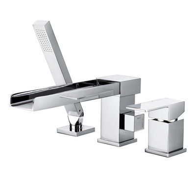 WOWOW Waterfall Single-Handle Deck-Mount Roman Tub Faucet with Hand Shower in