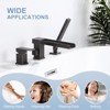 The water outlet of the deck mount tub faucet is designed with a wide arc, the overall smooth outline is elegant and generous, and the waterfall water effect is full of modern atmosphere, which is one of the best choices for creating a beautiful bathroom environment. Crafted from solid brass, our roman tub faucet exudes durability and elegance. The dual handle design allows you to effortlessly adjust the water temperature and flow, providing you with the perfect bath every time. Installation is a breeze with the included 3/8 in. adapters, ensuring compatibility with your existing plumbing system. Additionally, the 59 inch handheld shower offers more convenience and functionality.