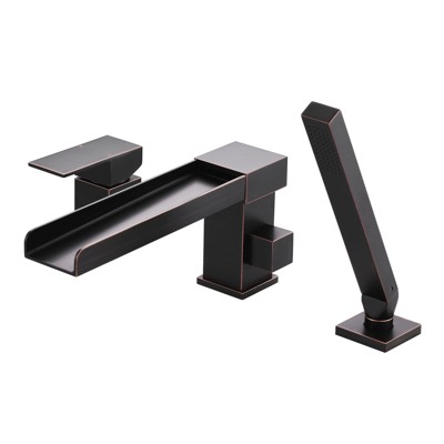 Product Name: WOWOW Waterfall Single-Handle Deck-Mount Roman Tub Faucet with Hand Shower in Oil Rubbed Bronze