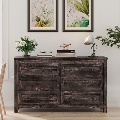 AMERLIFE Farmhouse 6 Drawers Dresser, Wood Rustic Chest of Drawers for Bedroom, Black