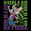 • Unleash your inner kid at heart in style with this new juniors' t-shirt featuring the lovable Chuck E. in a burst of excitement, framed by the unforgettable slogan “Where a Kid Can Be a Kid,” printed in bold purple and green lettering.