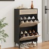 - [Multifunctional Storage:] Combines a pull-out top drawer for small items and two flip drawers with adjustable double-layer compartments for versatile shoe and accessory organization.