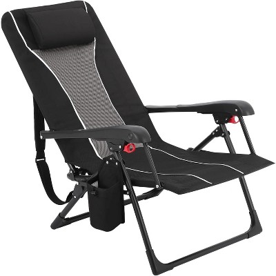 Foldable Reclining Lounge Chair – 330lbs Capacity, Adjustable Backrest & Headrest, Side Pockets for Camping, Beach, Patio (Black)