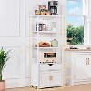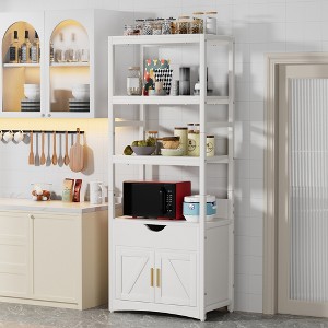 With its sleek white finish and barn-style doors, this kitchen storage cabinet from VECELO complements any room, decor and furniture. It perfectly accommodates small kitchen appliances on the market. Includes two open shelves and a one-piece drawer that perfectly organizes a variety of kitchen essentials, keeping them tidy and easily accessible. The kitchen baking rack has a built-in power outlet and USB port to keep your kitchen utensils charged at all times without the need for additional extension cords. This storage cabinet is crafted with high quality MDF and metal fasteners for enhanced stability and durability. The surface is coated with high quality paint to ensure a smooth and even finish. In addition to being used as a kitchen storage cabinet, it can also be used in the living room to store various items or as a bathroom cabinet.