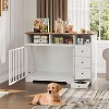 - Organized Living:This modern dog crate features a generous tabletop for displaying decor or essentials, plus three open drawers and three concealed drawers. Keep your pet's toys, leashes, and accessories organized while maintaining a tidy living area.