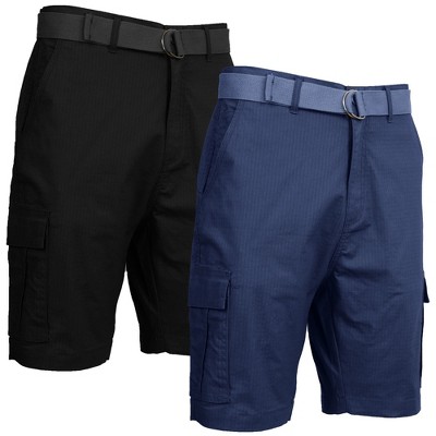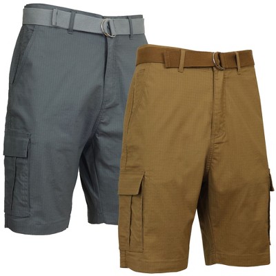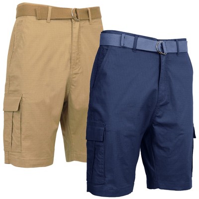 Galaxy Rugged Trail Men's Cotton Stretch Ripstop Cargo Shorts With Belt-2 Pack