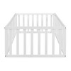 Okak Solid Wood Floor Bed Twin/Full/Queen Size,Low-Profile Bed Frame with Heightened Fence and Door, Kids Playroom Bed