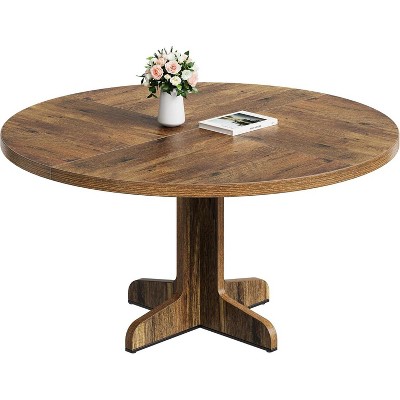 47 Inch Round Dining Table for 4, Farmhouse Kitchen Table with Wood Tabletop and Stable Base, for Kitchen, Living Room, (Table Only)