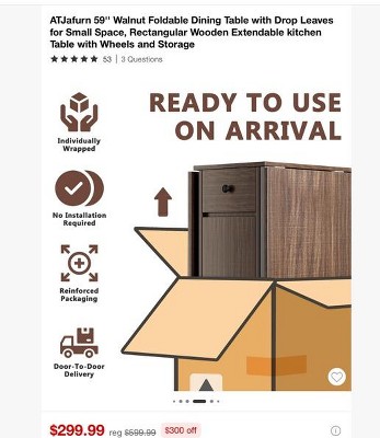 ATJafurn 59'' Foldable Dining Table with Drop Leaves for Small Space, Rectangular Wooden Extendable kitchen Table with Wheels and Storage - 2 of 4ATJafurn 59'' Foldable Dining Table with Drop Leaves for Small Space, Rectangular Wooden Extendable kitchen Table with Wheels and Storage - 3 of 4ATJafurn 59'' Foldable Dining Table with Drop Leaves for Small Space, Rectangular Wooden Extendable kitchen Table with Wheels and Storage - 4 of 4