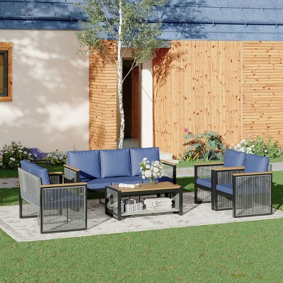 Product Name: EROMMY 6 Pieces Modern Outdoor Conversation Set Sectional Sofa With Ottomans And Coffee Table