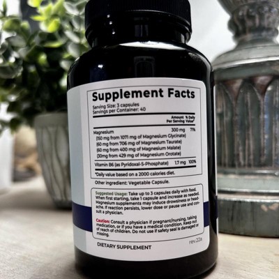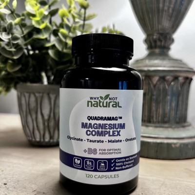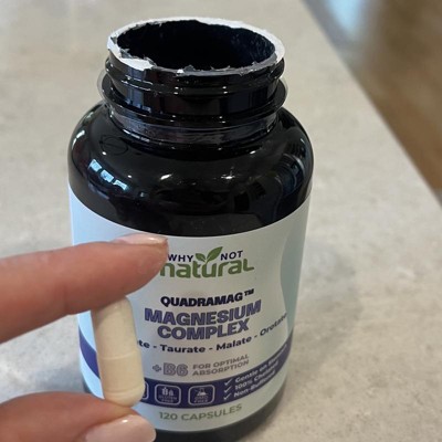 Why Not Natural 4-in-1 Magnesium Complex Supplement - Glycinate, Taurate, Malate, Orotate Blend - 300 mg per Serving, 120 Capsules