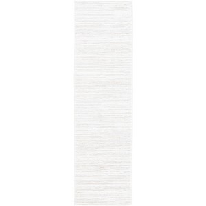 Enhance your living space with this elegant ivory runner, expertly crafted in Turkey with a contemporary aesthetic. The solid color and sleek design create a serene and sophisticated look. Sized at 2 ft 2 in by 18 ft, it perfectly complements hallways or entryways. The power loomed technique ensures a precise weave, combining polypropylene, cotton, and polyester for a pleasing texture and durable performance. With a thickness of half an inch, this rug balances comfort and functionality, providing a cozy underfoot experience. Transform your home with this stylish addition that blends seamlessly into any decor, bringing warmth and elegance to your floors.