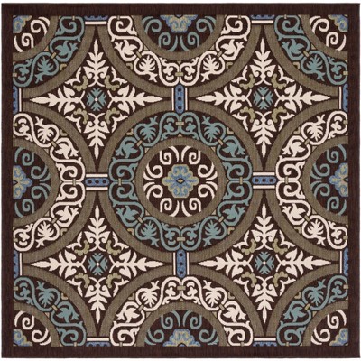 Veranda VER080 Power Loomed Indoor/Outdoor Area Rug - Cream/Terracotta - 6'7"x6'7" - Safavieh