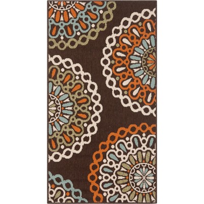 Introduce a touch of elegance to your home with this exquisite area rug, thoughtfully power loomed in Turkey. Measuring 2 feet 7 inches by 5 feet, this small rectangular rug is an ideal centerpiece for spaces needing a stylish accent. The rich chocolate and terracotta colors blend beautifully with the geometric pattern, giving it a traditional style that complements a variety of decor themes. Crafted from a unique blend of 87 percent polypropylene, 9.3 percent polyester, and 3.7 percent latex, it is designed to offer both visual appeal and comfort. Its 1/8 inch height offers a sleek profile, making it an unobtrusive yet striking addition to any room. Whether placed in a living area, bedroom, or hallway, this rug is sure to enhance the character of your space with its timeless design.