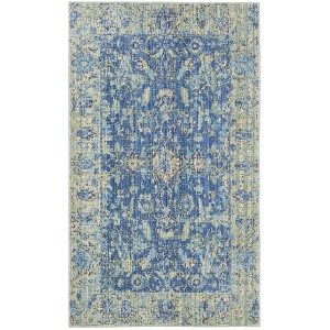 Introduce timeless elegance to your space with this exquisite 3' X 5' area rug in a captivating blend of blue and multi colors. Crafted in Turkey with meticulous attention to detail, this small rectangle rug boasts a plush 1/4" height that offers both comfort and style.