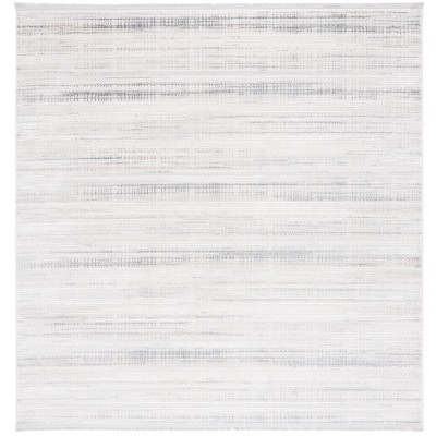 Elevate your living space with our contemporary square area rug, sized at a generous 6 feet 7 inches on each side, designed to create a harmonious blend with your existing decor. The chic grey and ivory color palette exudes a sense of calm and sophistication, making it a versatile addition to any room.