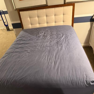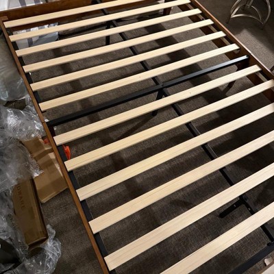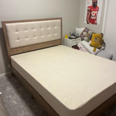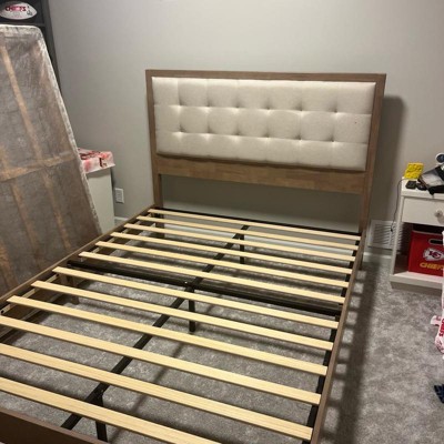 Absolutely love this bed. It was so easy to build. I initially added a A box to the frame before adding the mattress, but it went way too high and was covering up the Upholstered part of the bed. After removing the box, I was worried that the bed would fall too far down to the ground, but it actually fit very perfectly and the planks make it so the mattress sits in the right place. I received an incentive to write this review.