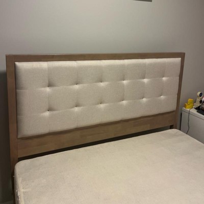 Upholstered cream, wooden bedframe