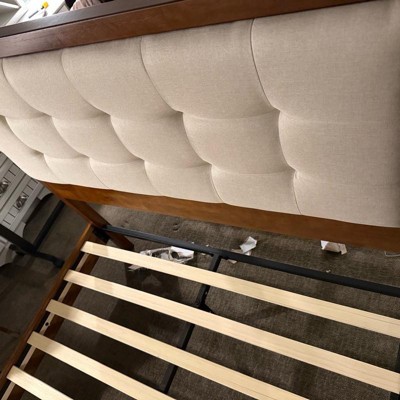 AMERLIFE Wood Platform Bed Frame Queen Size Upholstered Tufted Headboard,Solid Wood Bed,Walnut