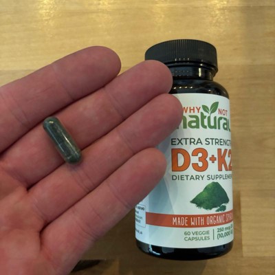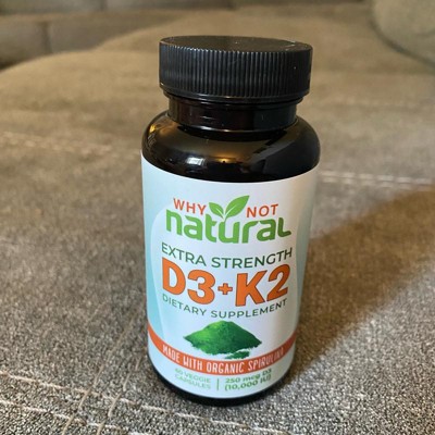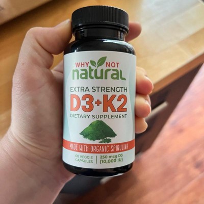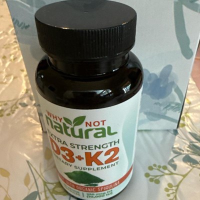 Why Not Natural Vitamin D3 K2 (MK-7) with Organic Spirulina, 10000 IU Extra Strength, Supports Bone, Immune & Mood Health, 60 Capsules