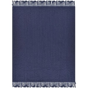 HomeRoots 60" X 50" Blue Kantha Cotton Throw Blanket with Embroidery