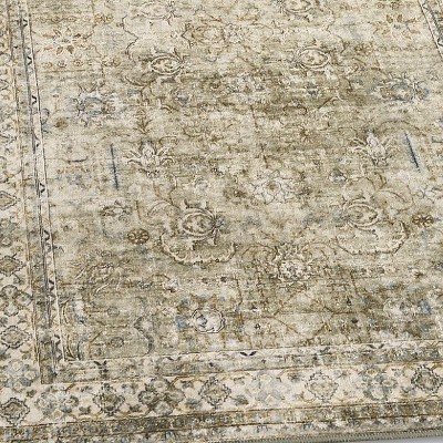 Area Rug Washable Rug Vintage Traditional Mat Distressed Indoor Foldable Accent Rug Floral Non Slip Low Pile Carpet