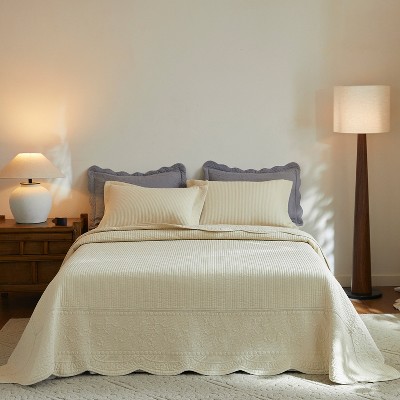 Marcielo 3-Piece Oversized Elegantly Embroidered Cotton Quilt Bedspread Set