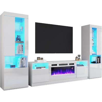 AMERLIFE Modern Highgloss Fireplace Entertainment Center Set