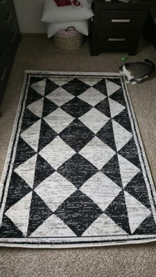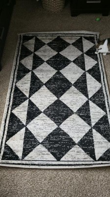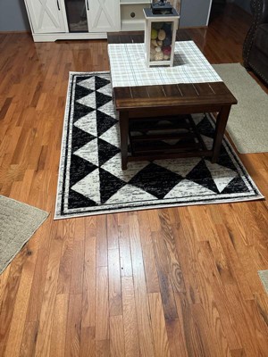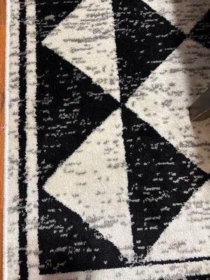 Transform your space with a modern geometric area rug that blends bold design with effortless sophistication. Featuring striking black and ivory tones, this rug enhances any contemporary setting while maintaining a timeless appeal. With a 0.39-inch pile height, it offers a sleek profile that fits well under furniture and in high-traffic areas. Crafted from durable, stain-resistant fibers, this rug is designed for everyday use with easy maintenance and no shedding.
