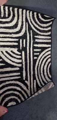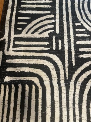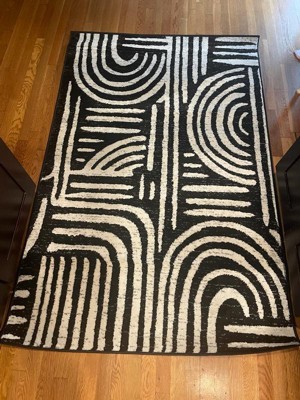 [This review was collected as part of a promotion.] The rug is so soft. Didn’t think that the colors would be so contrasting. The black is so dark and the white is less of a cream color and more bright white. Not overall by style choice but nice rug