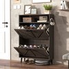- 2.Ample Storage for 12 Pairs of Shoes:Designed with a top surface, storage compartments, two flip drawers, and a bottom shelf, this cabinet offers versatile storage options to keep your footwear organized and easily accessible.design gives you a clean and orderly entryway space.