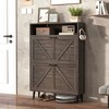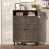 - 1.Timeless Barn Door Style:Featuring a charming rustic barn door design with sleek metal handles, this shoe cabinet effortlessly complements any home décor, adding a touch of classic elegance to your space