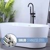 - Our freestanding faucet stands at 46.45 in. tall, with a spout height of 41.73 in. and 59 in. hot and cold hose length