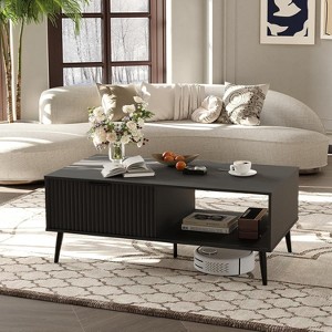 The Acekool Mid-Century Modern Coffee Table offers a sleek, functional design that enhances living rooms, offices, and more. Its stylish wood grain tabletop pairs with a unique wave-pattern sliding door, delivering a retro-modern look that blends well