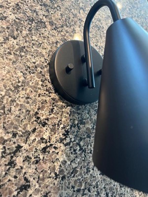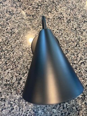 [This review was collected as part of a promotion.] I have been wanting a more dark sky friendly light on my back porch for a while now, and this one fits the bill nicely! We live in a rural area and like to enjoy the stars and light our space in a way that does not contribute to light pollution. I like the classy matte black finish as well as the downward facing direction. The shade is of a generous width, so it accomodated a standard lightbulb very well and also had room enough that I was still able to use an adapter to attatch my security camera, so that the camera is powered as well as able to turn the light on automatically at night. My husband had no issues with the straightforward installation, and we were able to enjoy our fashionable and functional new porch light within 20 minutes of getting it out of the box!