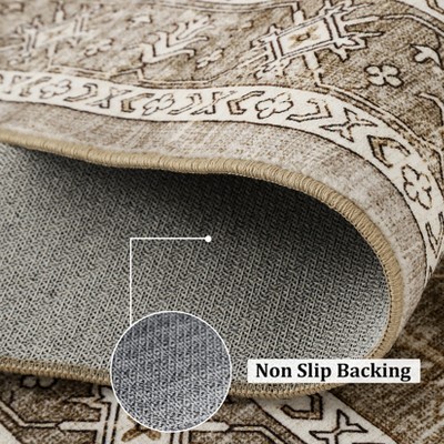 Area Rugs for Living Room - Machine Washable, Non-Slip, Stain Resistant, Soft Boho Vintage, Low Pile Thin Carpet