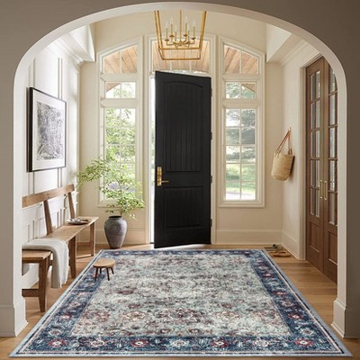 Area Rug Machine Washable Rug Vintage Distressed Non Slip Non Shedding Rugs Low Pile Foldable Retro Printed Indoor Carpet for Living Room Bedroom