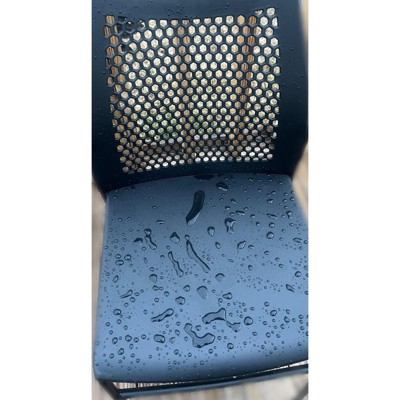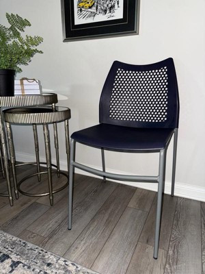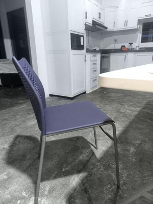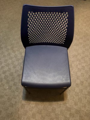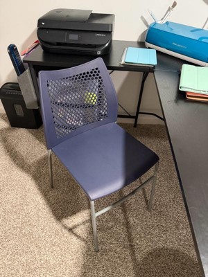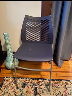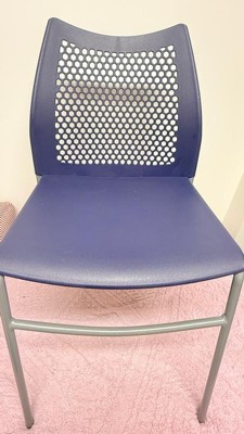 [This review was collected as part of a promotion.] I love my blue air vent stackable chair, it is so comfortable and can hold lots of weight. It is made of heavy duty plastic, seat back molded contoured design provides comfort which helps maintain a good posture, it is also air vented back which allows air to circulate to keep back cool which is really nice! It also has plastic floor guides that protect my floor when moving it around. It can be use outdoors or indoors, & it can be clean super easy plus no rust. I highly recommend this chair!
