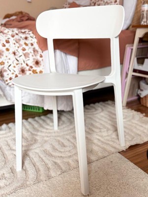 [This review was collected as part of a promotion.] This chair looks super cute in my room! It is sturdy, a great height, lightweight, and comfortable. I am using it as my new desk chair and I already love it! I can sit in it for hours and still feel comfortable. The backrest is great as well. I love the all white as it looks chic and clean. It is also easy to clean which is great.
